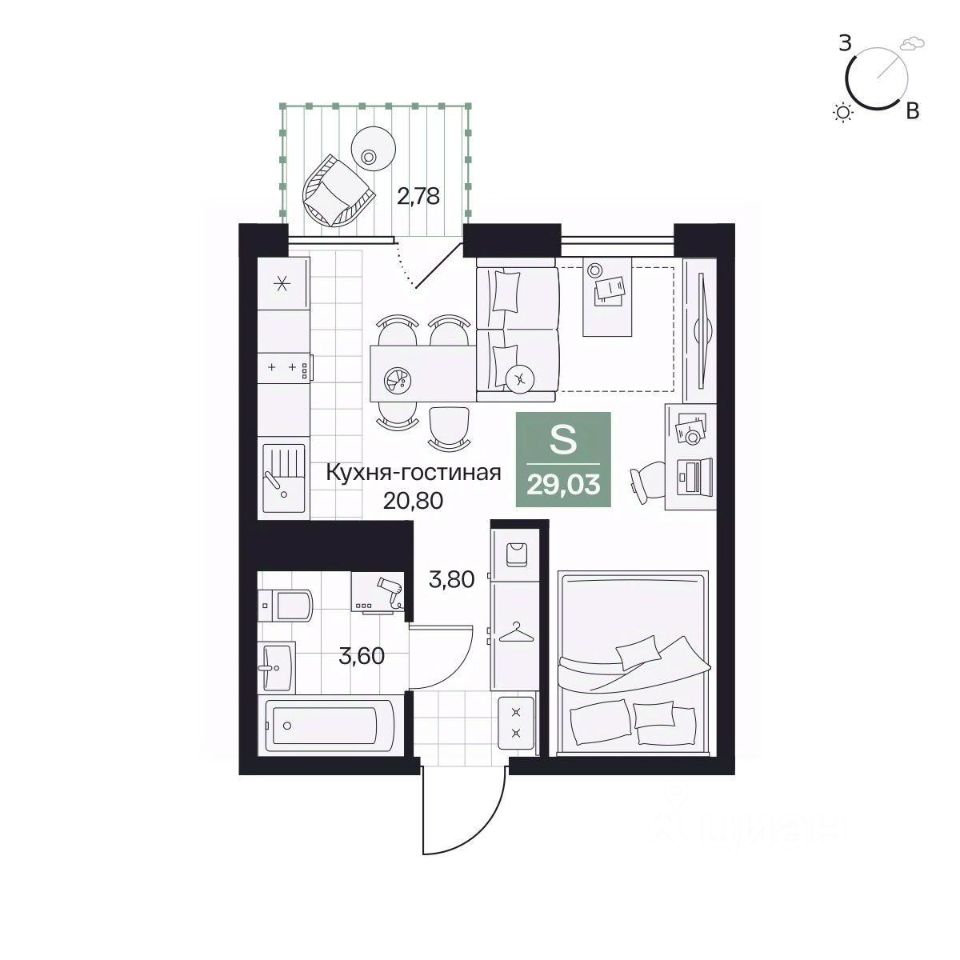 Общая площадь29,03 м²