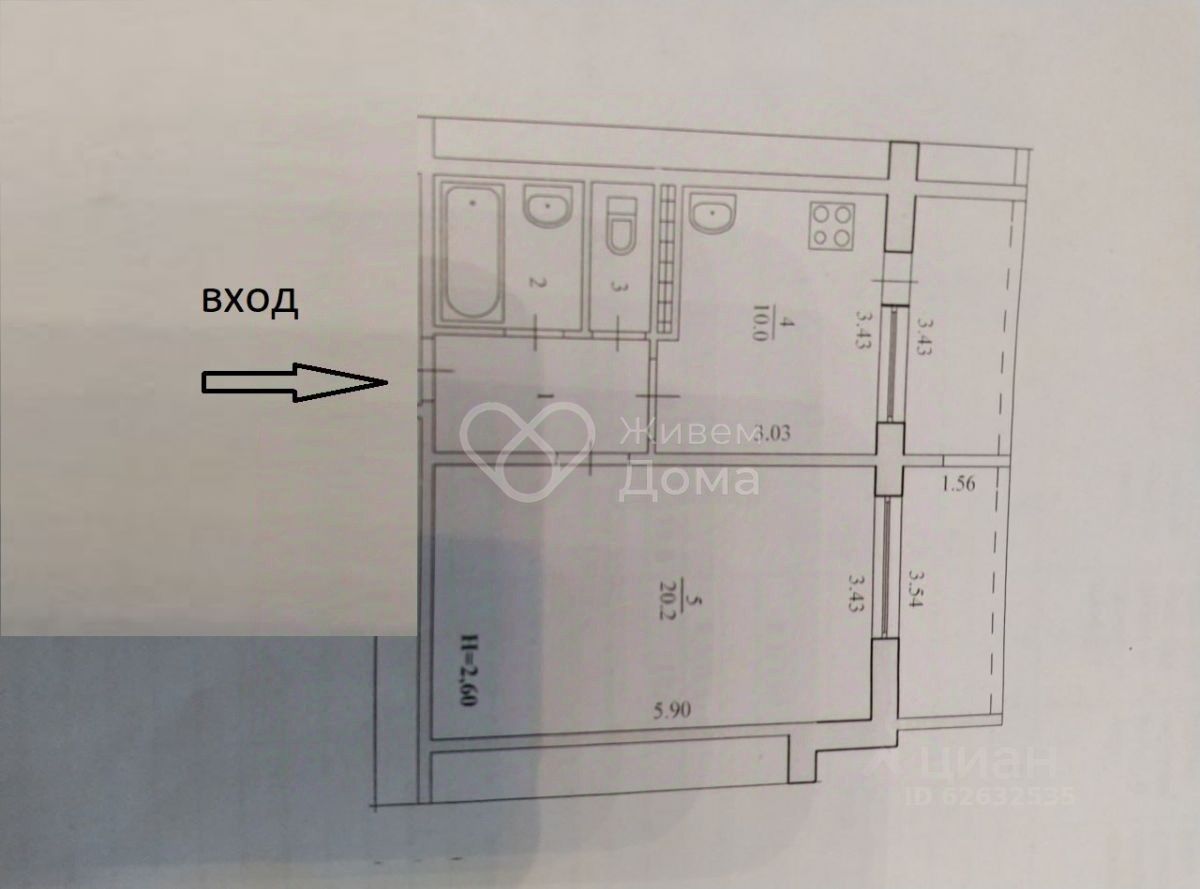 Улучшенная планировка: общая 39.20 / жилая 20.20 / кухня 10.00 кв. метров.