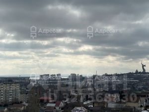 * Панорамный вид: застекленная лоджия с витражными окнами открывает вид на Мамаев Курган.