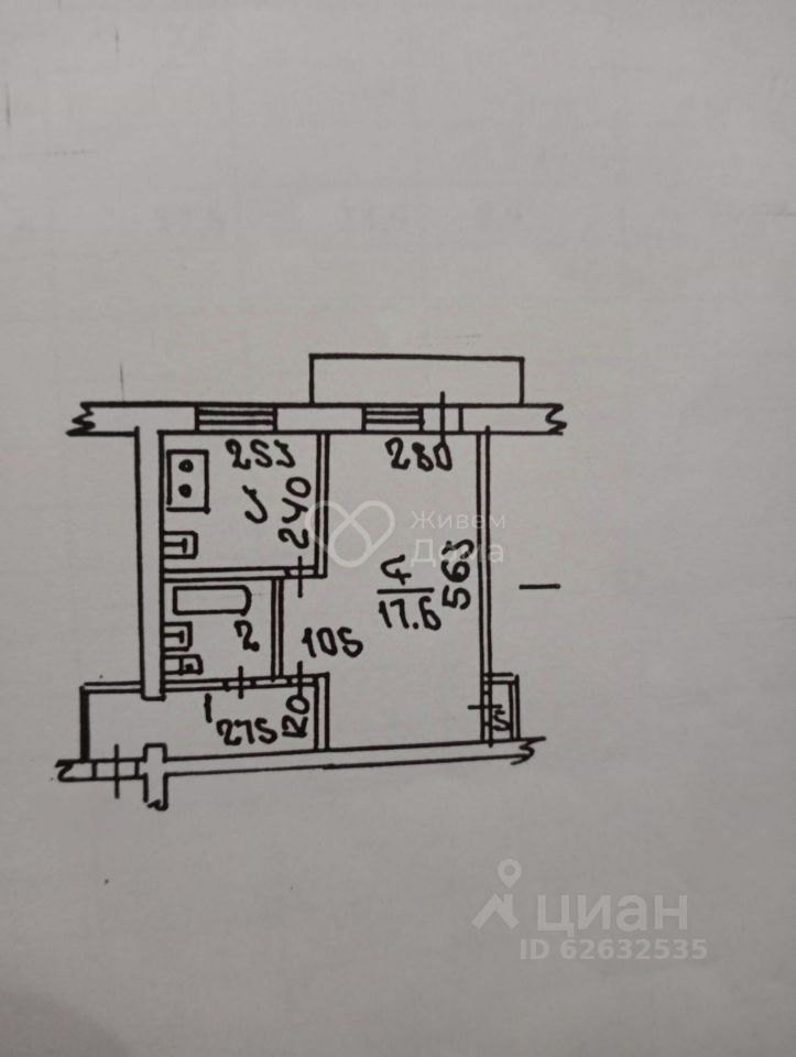 Брежневская планировка: общая 31.60 / жилая 17.60 / кухня 6.10