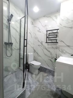 Санузел: отделка плиткой, керамогранит на полу, дорогая душевая кабина и современная сантехника.