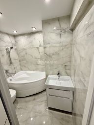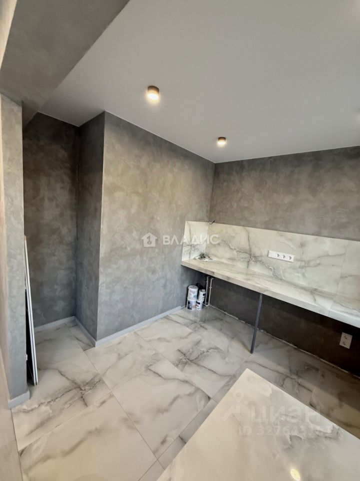На кухне выполнен теплый пол. Стены отделаны декоративной штукатуркой премиум класса. Окна пластиковые. Натяжной потолок с декоративными светодиодными светильниками. Установлен новая сплит-система.