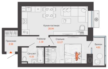 Жилая площадь12,3 м²