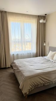 Квартира полностью меблирована и укомплектована техникой( Сплит системы, телевизоры во всех комнатах, посудомоечная машина, встраиваемая техника, сушильная + стиральная машина, умный дом,электрокарнизы открывающиеся при помощи Алисы и многое другое.