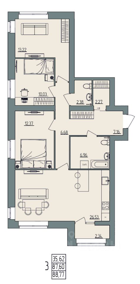 Общая площадь88,77 м²