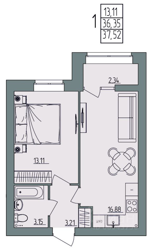 Общая площадь37,52 м²