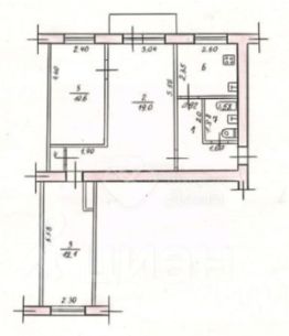 Сталинская планировка: общая 56.70 / жилая 42.00 / кухня 6.10