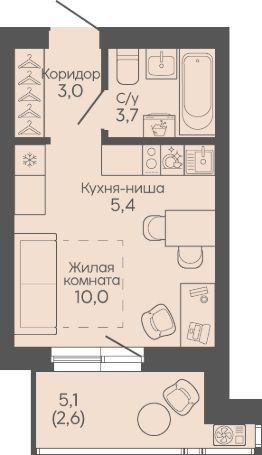 Площадь кухни5,4 м²