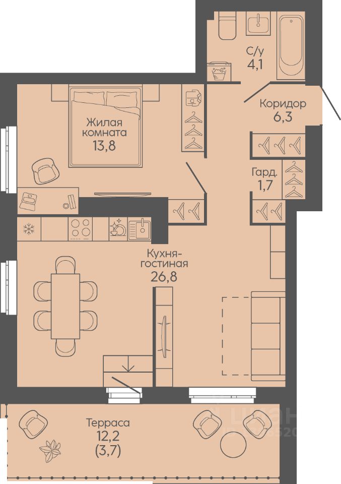 Жилая площадь13,8 м²
