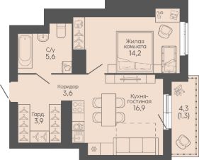 Жилая площадь14,2 м²