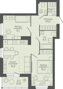 Общая площадь61,7 м²