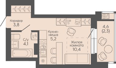 лоджии с панорамным остеклением во всех квартирах позволяют реализовать различные идеи - от зимнего сада до мини-спортзала или уютной зоны для чтения