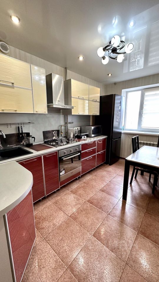 Состояние "заходи и живи": заменена проводка, все коммуникации: трубы, радиаторы, сантехника, потолки натяжные во всех помещениях, на полу в кухне, коридоре и санузел — плитка, в жилых комнатах ламинат. На полу в санузле теплый пол.