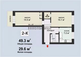 Общaя площaдь квартиpы - 49.3 кв.м.: