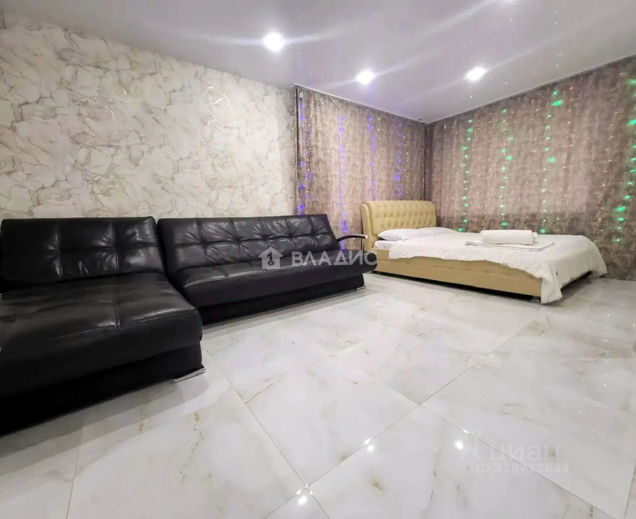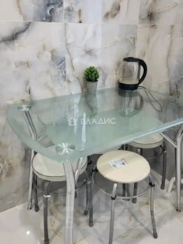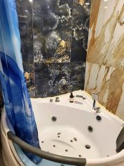 Евроокна выходят во двор, обеспечивая тишину и спокойствие. Во всех комнатах пол с подогревом из мраморной плитки, потолки натяжные, в комнате установлена сплит-система. Совмещённый санузел с совершенно новой сантехникой и джакузи удобен и функционален.