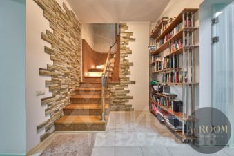 Квартира выполнена в изысканном итальянском стиле, где каждая деталь продумана до мелочей. Интерьеры украшены авторскими венецианскими фресками, создающими неповторимую атмосферу аристократизма и утончённости. Натуральный паркет, керамогранит, система "тёплый пол" и центральное кондиционирование обеспечивают максимальный комфорт в любое время года.Эксклюзивные отделочные материалы и мебель из натурального дерева подчёркивают статус и эксклюзивность этого объекта.