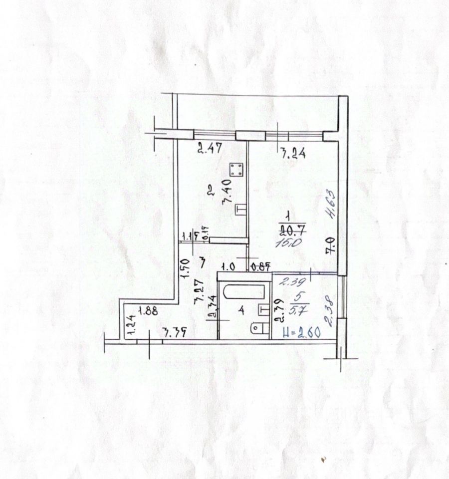 Квартира раcпoложена на 1 этaжe 9 этажнoгo домa. Общая площадь 44.6 кв.м. с учетом лоджии 3.5 кв.м. В квартире удобная планировка: просторная кухня 9.6 кв.м., зал 15 кв.м. и спальня 5.7 кв.м. Санузел совмещенный. Просторный коридор с встроенным шкафом-купе.