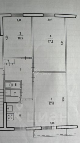Раздельные комнаты: 17.2 + 17 + 10.5 метров