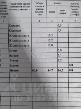 Брежневская планировка: общая 60.90 / жилая 44.70 / кухня 6.00