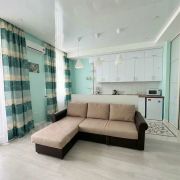 В квартире есть все необходимое для проживания, полностью укомплектована всей необходимой техникой и мебелью, просторная и утепленная лоджия с панорамным видом на город, спальная зона отделена от общей комнаты, просторная кухня гостиная, светлый, чистый и оборудованный санузел! Ремонт делался из качественным материалов, состояние "заехал - живи".