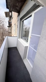 Балкон обшит с двух сторон, стены и откосы оформлены штукатуркой кароед, на полу — водостойкое тёплое покрытие.