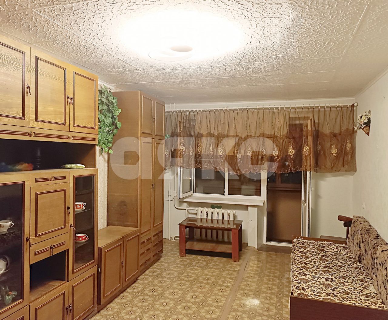 Хорошее состояние: выполнен косметический ремонт, установлены натяжные потолки, пластиковые окна (VEKA), на полу линолеум.
