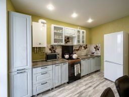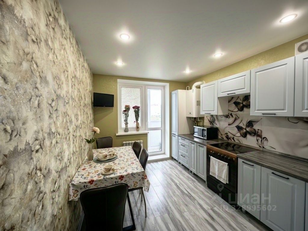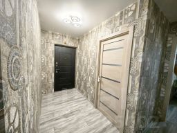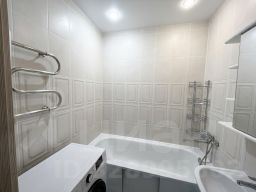 Квартира в хорошем состоянии. Натяжные потолки, светлые, матовые. Окна пластиковые белого цвета с москитными сетками. На полу ламинат. Установлены современные межкомнатные двери. Раздельный санузел. Есть застекленный пластиком балкон