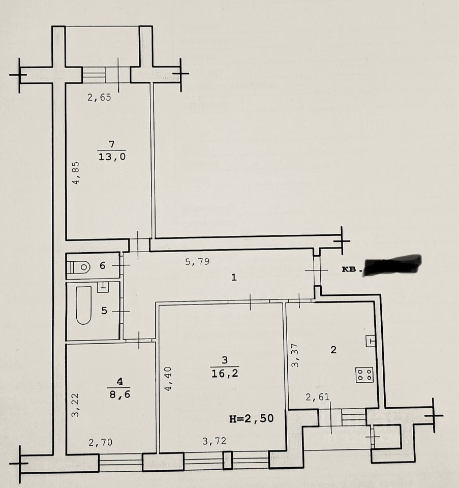 Продается 3-комнатная квартира, общей площадью 60.7 кв.м.