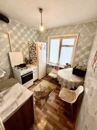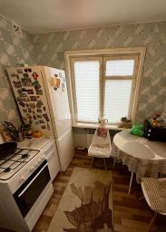 Трёхкомнатная квартира общей площадью 46,3 кв. м на пятом этаже пятиэтажного дома. Жилая площадь составляет 33,6 кв. м (19.9+8+5.7), площадь кухни — 6,2 кв. м. Высота потолков — 2,6 м.