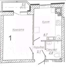 Жилая площадь 14.5 кв. метров.