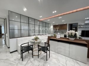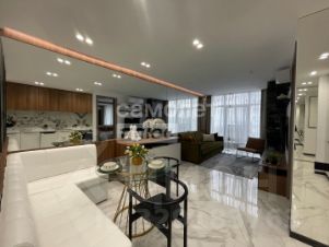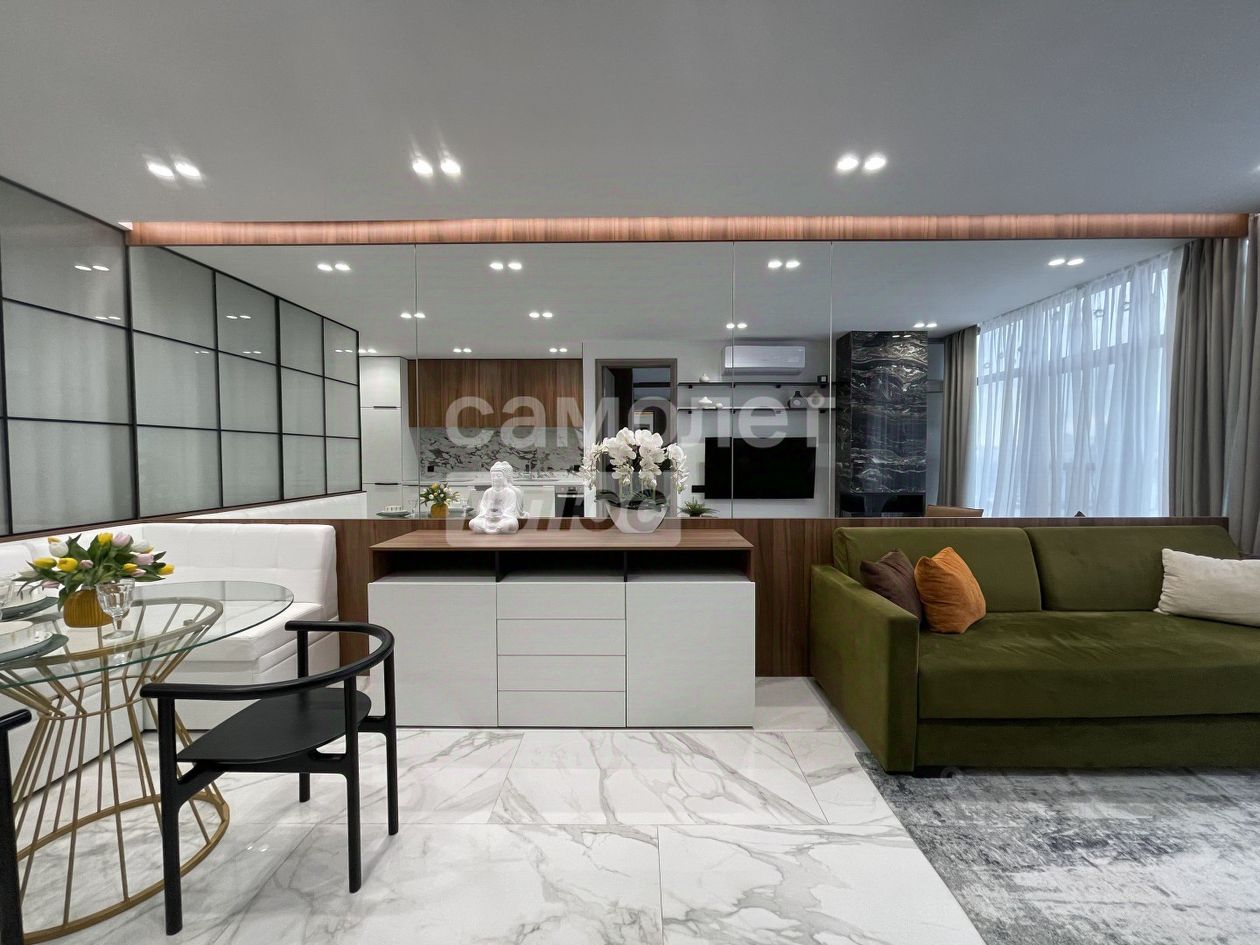 В квартире выполнен шикарный высококачественный ремонт из дорогих материалов под строгим руководством дизайнера! Продумано все до мелочей. Просторная кухня — гостинная, отдельная спальня и кабинет. Одна спальня с двухспальной кроватью и вместительным шкафом. Другая спальня небольшая с диваном для гостей, а также можно использовать ее как детскую.