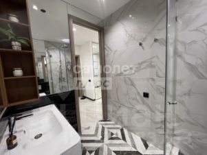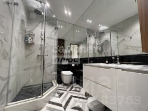 Совмещенный сан-узел с душевой кабиной.Все выполнено в одном стиле. Очень стильно, модно и современно! В квартире остается вся техника и мебель! Состояние - Заходи и живи.