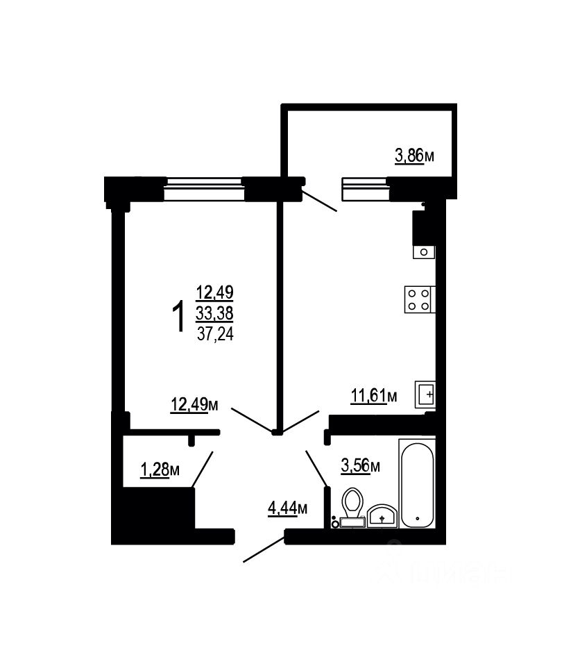 Общая площадь37,24 м²