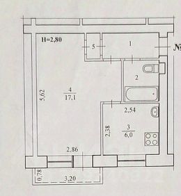 Брежневская планировка: общая 29.90 / жилая 17.10 / кухня 6.00