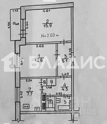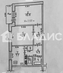 Изолированные комнаты: 12.60 + 15.90 кв.метров.