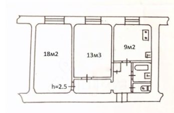 Планировка удобная: две изолированные комнаты площадью 18 и 13 кв. м, раздельный санузел и просторная кухня 9 кв. м.