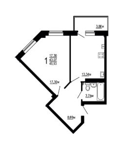 Жилая площадь17,3 м²