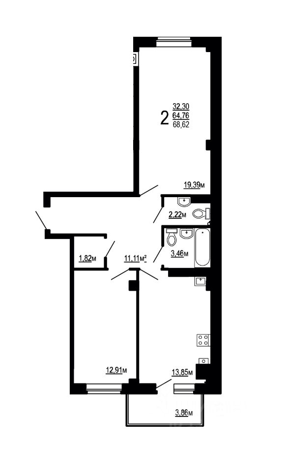 Общая площадь68,62 м²