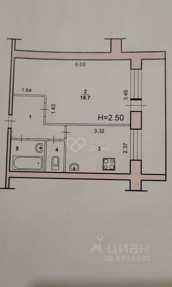 Планировка: общая 34.60 / жилая 18.70 / кухня 7.90