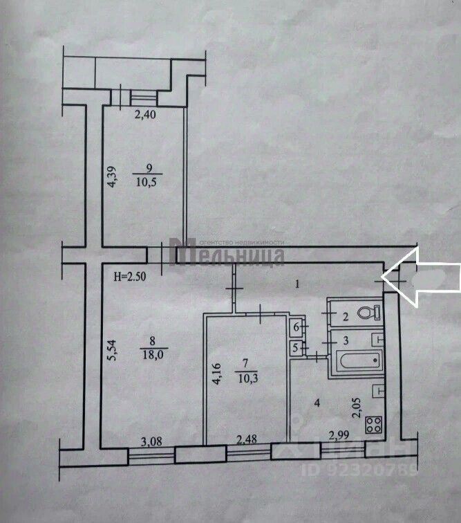 Комнаты: 18,0+10,5+10,3 м²
