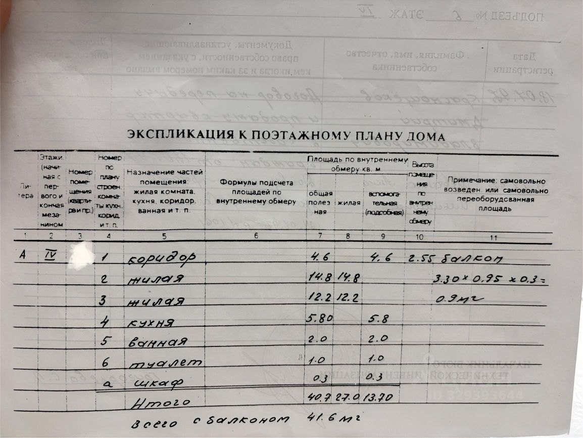 Общая площадь квартиры с балконом 41,6 м2.