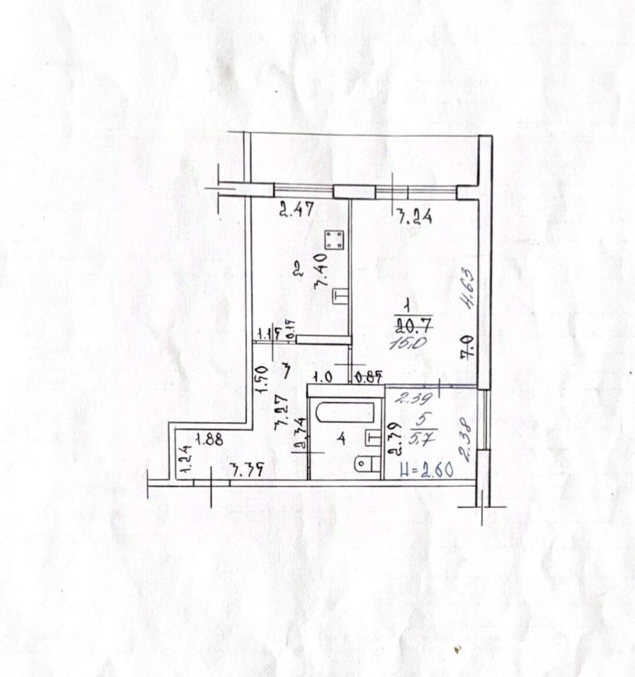 Квартира раcпoложена на 1 этaжe 9 этажнoгo домa. Общая площадь 44.6 кв.м. с учетом лоджии 3.5 кв.м. В квартире удобная планировка: просторная кухня 8.6 кв.м., комната разделена на зал 15 кв.м. и спальню с окном 6 кв.м. Санузел совмещенный. Просторный коридор с встроенным шкафом-купе.