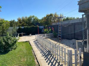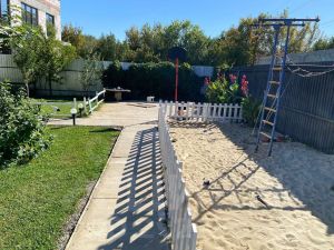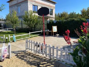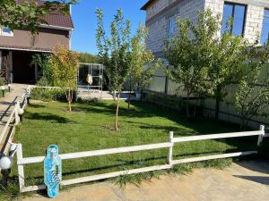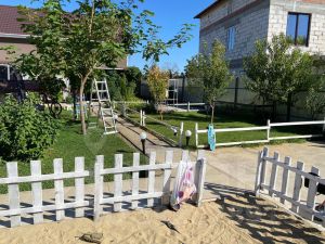 Участок ровный, ухоженный, автоматический полив, хвойные, плодовые деревья, газон, терраса, мангальныя зона.