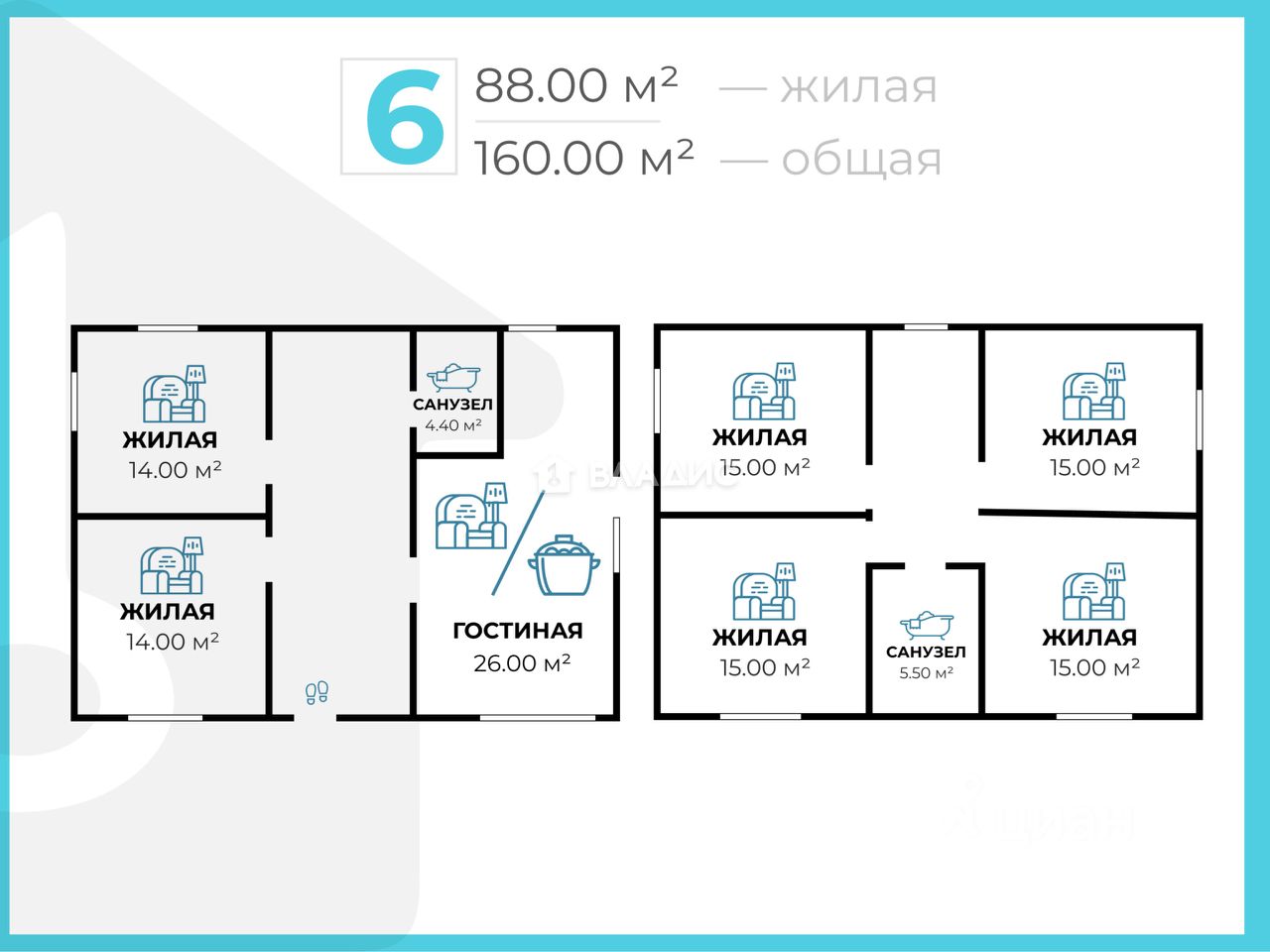 Площадь дома: 160 кв. метров.