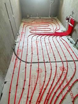 Отопление: водяные теплые полы (от газового котла) + радиаторы под окнами