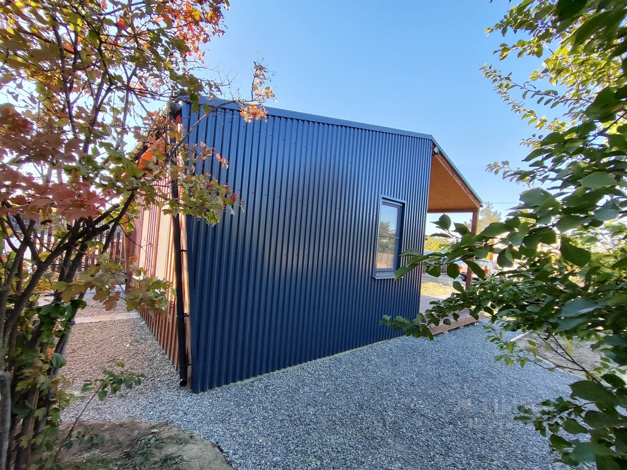 Фасад: влагостойкая фанера с реечной раскладкой