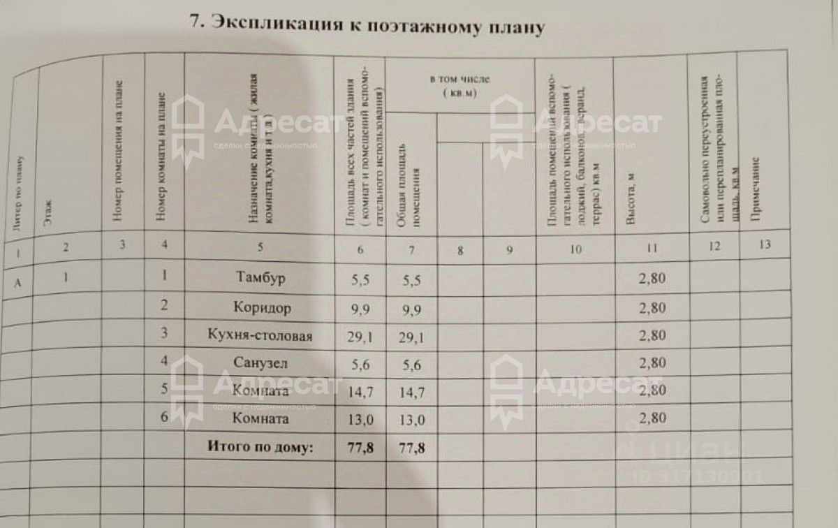 Общая площадь и планировка :