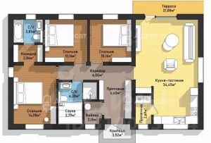 - Кухня-гостиная** (34.45 м²) с выходом на террасу идеально для семейных ужинов и приема гостей!
