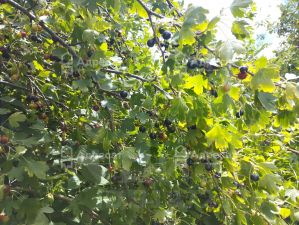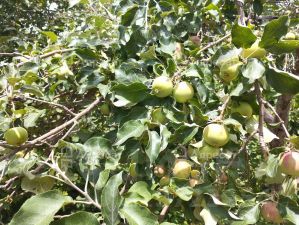 На участке есть небольшой сарай под инструмент.Растут груша,яблоки,ежевика,малина,абрикос,несколько видов винограда,смородина,орех