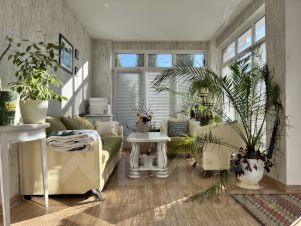 Гостиная и кухня-столовая (56 м2) с выходом на веранду и внутренний двор